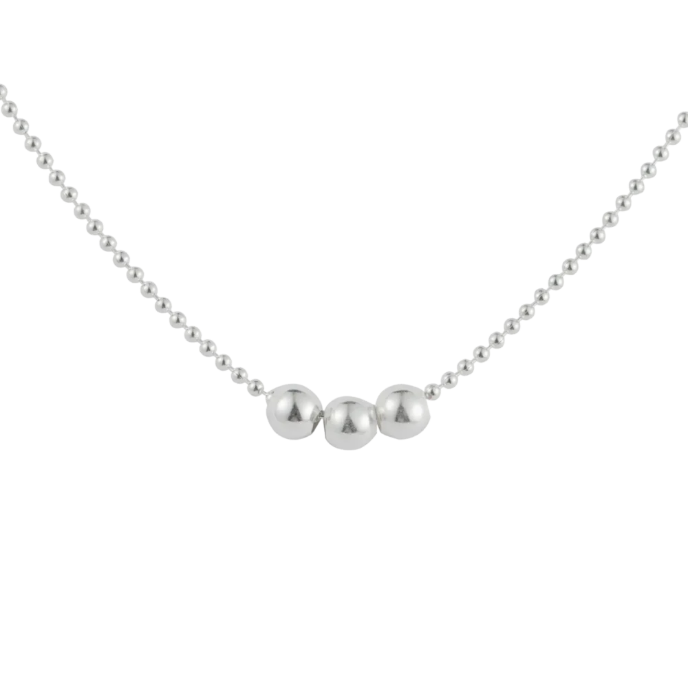 La cadena bolitas, elaborada en plata .925, es una pieza sutil y sofisticada que se adapta a cualquier estilo. Su diseño minimalista con tres pequeñas esferas en el centro agrega un toque de equilibrio y armonía, ideal para quienes buscan una joya discreta pero con carácter.