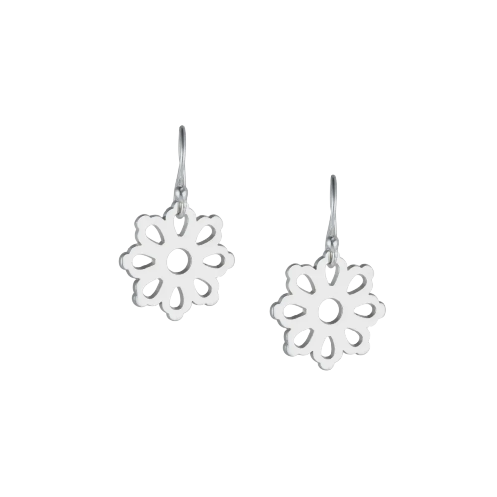 Etiquetas: Acabado Brillante, aretes, colgantes, Diseño Calado, Forma Floral, Gancho Sencillo, Pétalos Simétricos, Plata Pulida