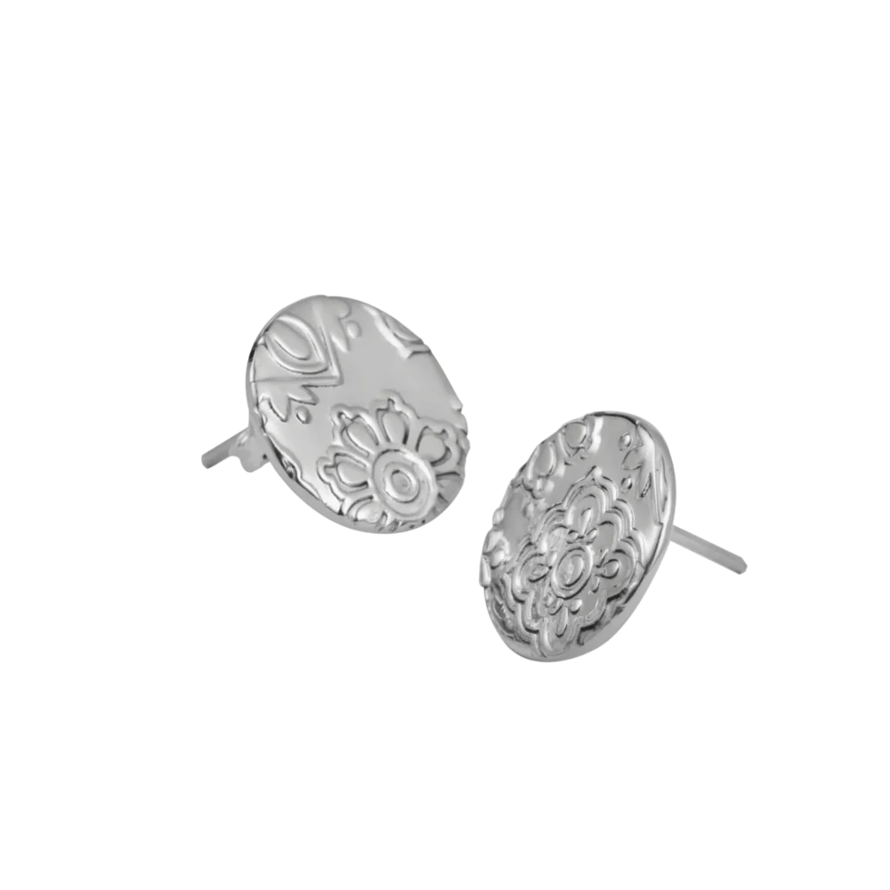 Etiquetas: aretes, Botón, Flor, Grabado, Redondos